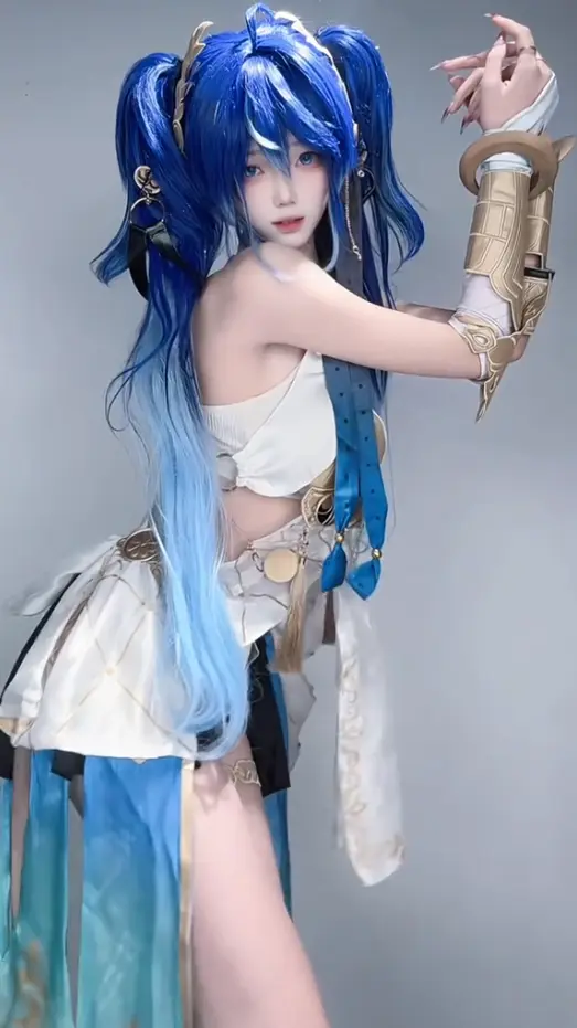 The overall vibe? Ethereal lunar elegance meets bold, skin-baring confidence — think a futuristic moon goddess ready for battle. Official art often shows her lounging against crystalline moons or swirling in blue energy, which cosplayers love to recreate. Also check out this amazing Phrolova Cosplay from Wuthering Waves.