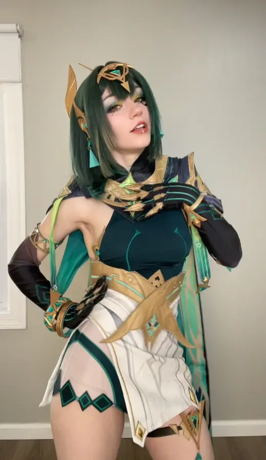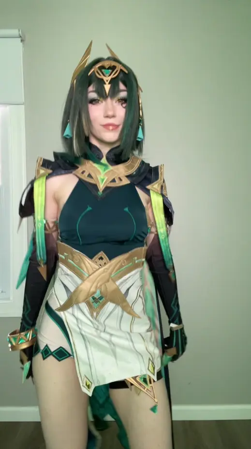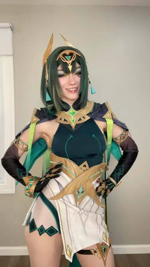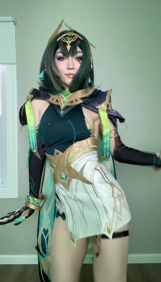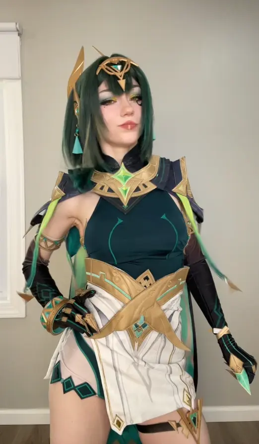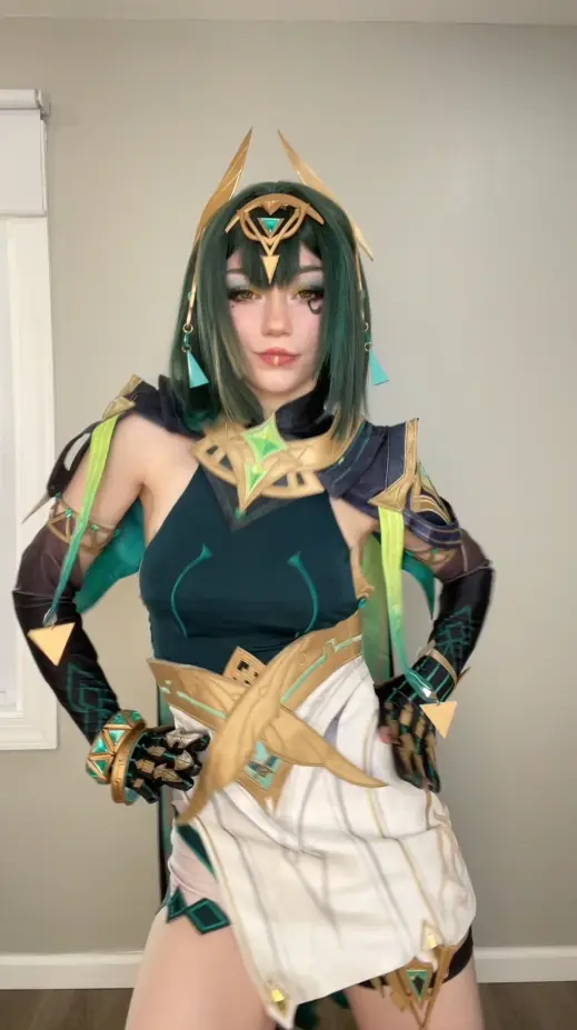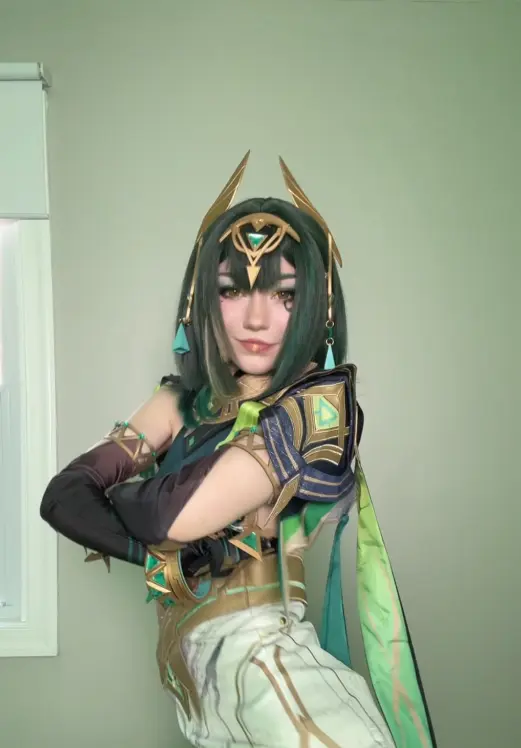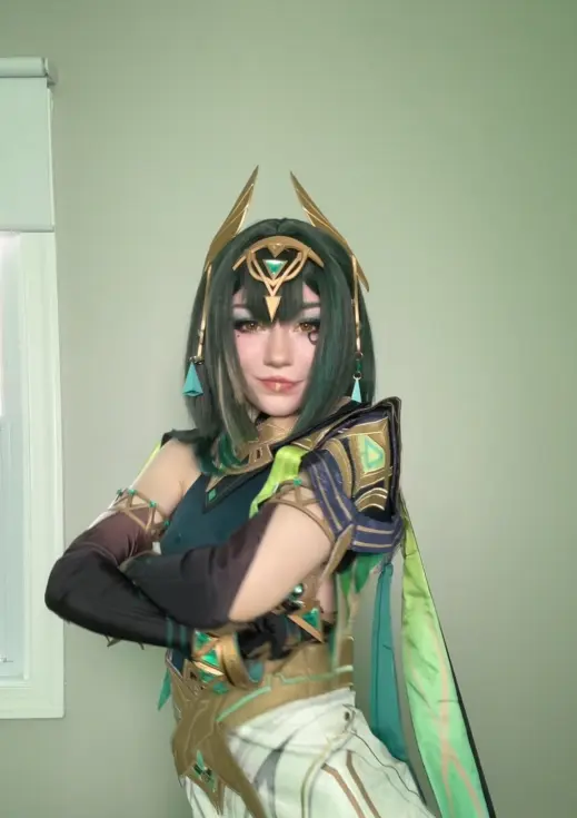 Lastly, when you’re getting into character for photoshoots or conventions, keep in mind that Nefer is incredibly calculating and brilliant. She holds the keys to Teyvat’s biggest secrets, so try to project calmness, total control, and a hint of intellectual superiority. While you can stick to the subtle in-game makeup canon, a lot of cosplayers go for a bold red lipstick — it creates such a stunning contrast against the green outfit. Also, take a look at this stunning D.Va cosplay from Overwatch.