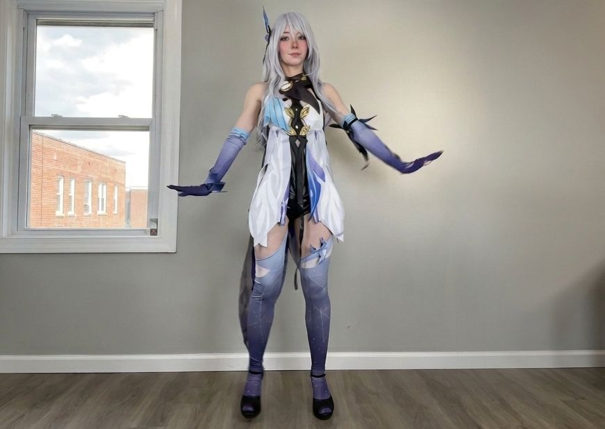 Creating a convincing Skirk cosplay requires careful fabric selection. Materials that move gracefully under light enhance the mystical atmosphere of the costume. Deep tones, smooth textures, and delicate highlights help replicate her refined aesthetic. Hair and styling play a major role in capturing Skirk’s presence. Clean lines and accurate shaping ensure that her silhouette remains recognizable. Makeup should emphasize sharp features and intensity, using subtle contouring to highlight a calm yet powerful expression.